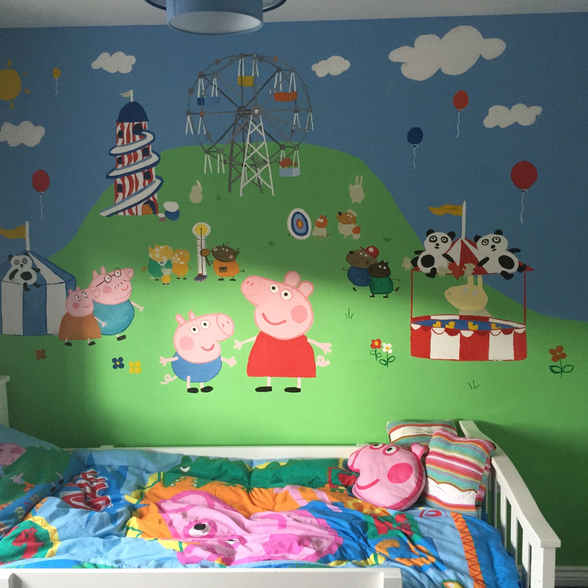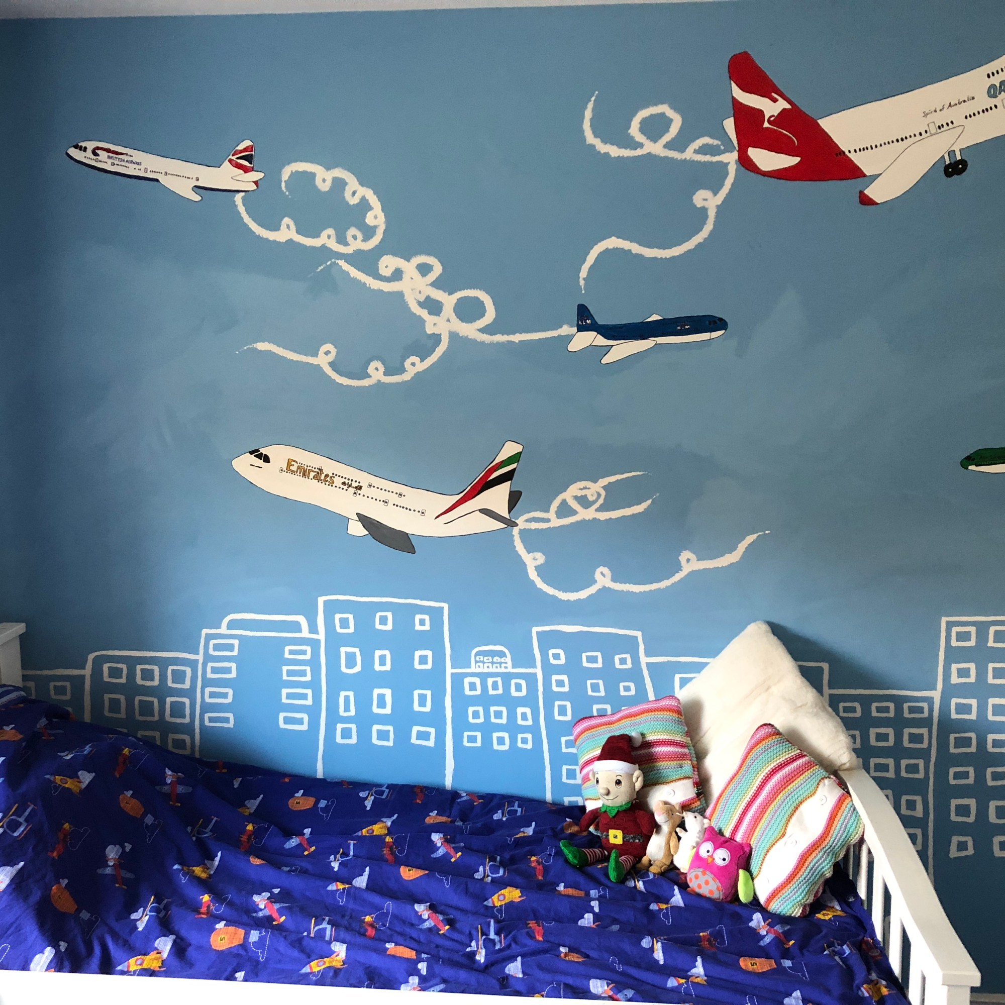 My love of murals began at home, where I painted them for fun on my children’s walls and redesigned them as they grew. I particularly enjoyed adding personal touches, like incorporating their names into the artwork, which gave each mural a special and meaningful character.